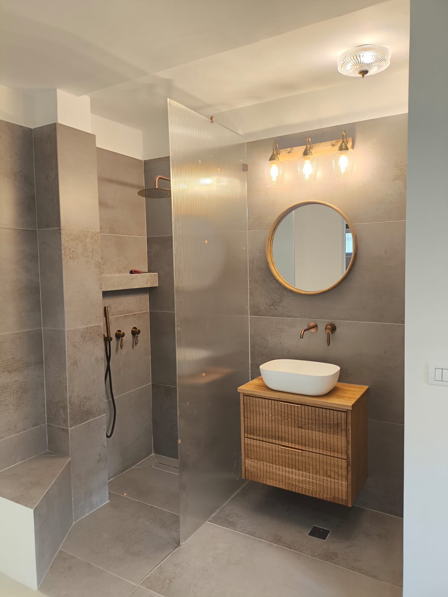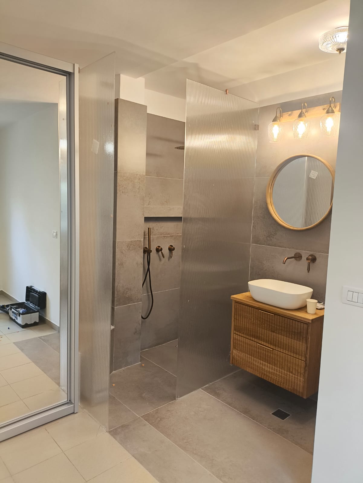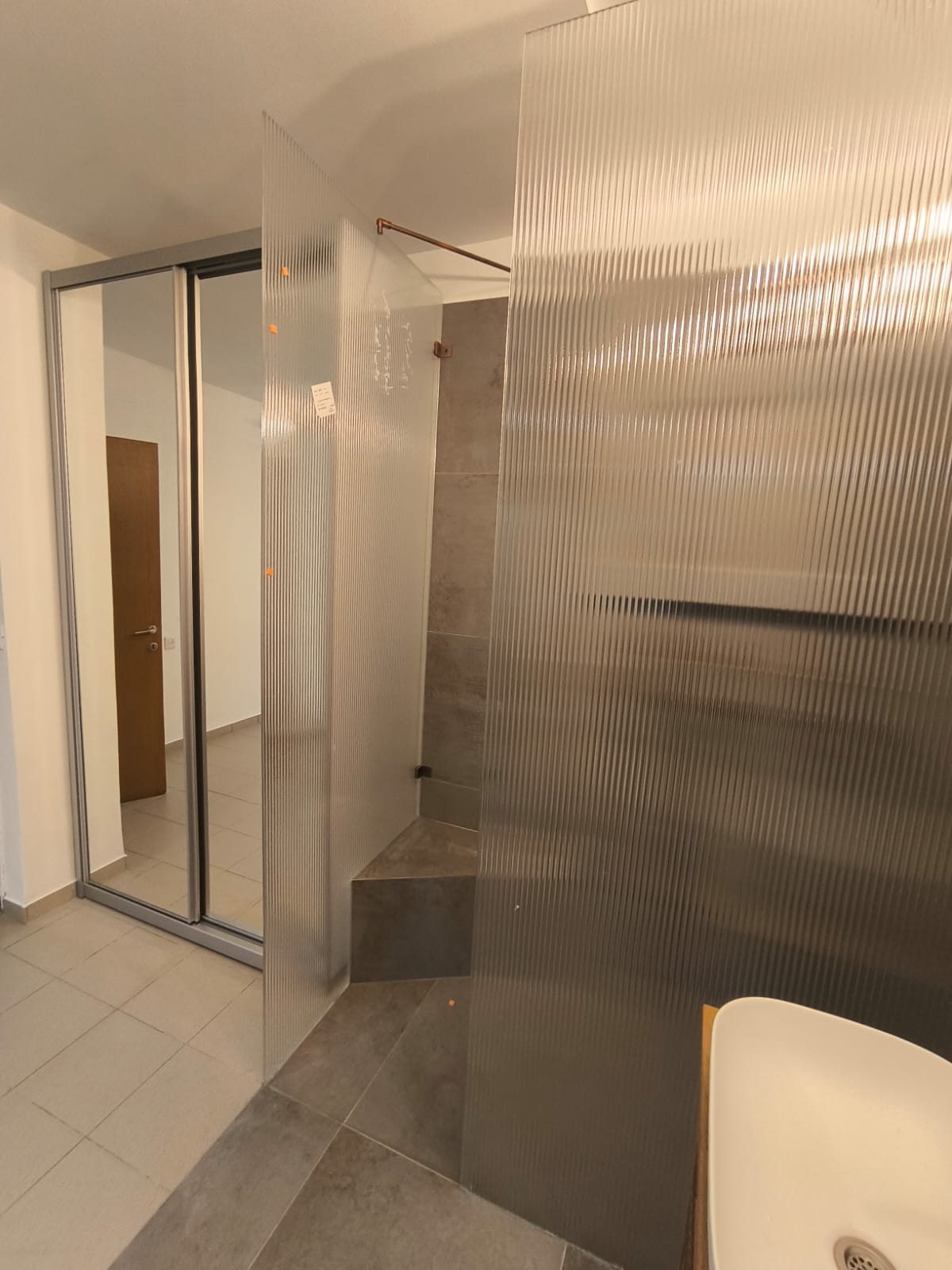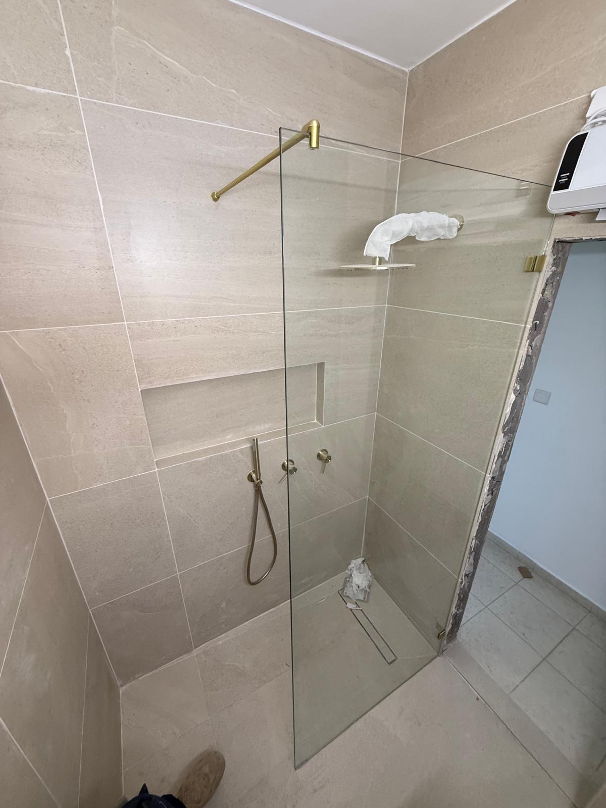 דפנות,פלטות קבועות {8 מ"מ צירים קו נקי} .תו תקן זכוכית מחוסמת .פרופילי הרמה,סגירה מגנטית,מגב תחתון סנפיר כפול,,סף מים למיקסום האיטום,מוט תמיכה לייצוב . מגיע בכל גודל ומידה בהתאמה לנתוני השטח. מגיע במבחר זכוכיות. בפרזול בגוון ניקל,שחור וזהב מט,זהב מבריק,רוז גולד,ברונזה צהובה,נחושת אדומה,גרפיט,סאטן,מוברש,לבן.מדידות ואספקות בכל רחבי הארץ